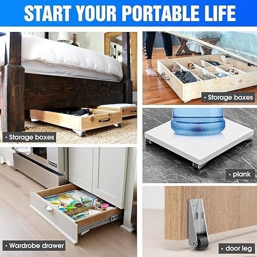 Frame Rigid Caster, Heavy-Duty Metal Side Mount Rubber Rolling Wheels for Furniture, Room Door, Underbed Drawer, Storage Box, Cabinet